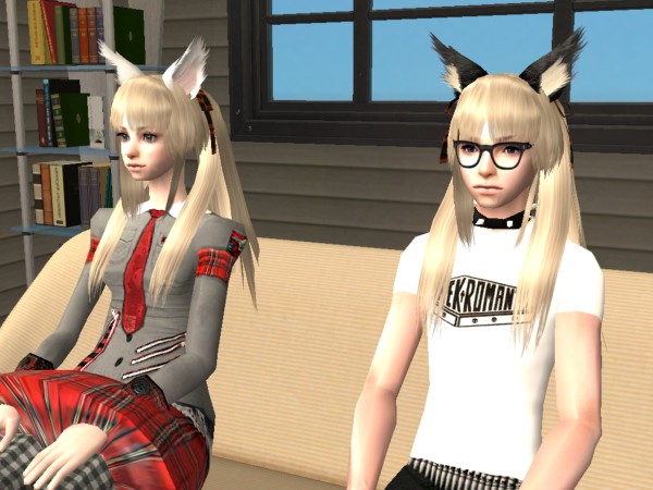 データ名は『Z99 F Hair 02+1』と『Z99 F Hair 02+2』です。 男性版とまったく同じ形のモノと、上記画像の様におさげ髪のオマケ付きのMESHで2種類あります。 作ってる時は、実際の髪型として考えると不思議な髪型だと思ってたのですが、マンガ的に考えたらさほど気にならなくなってきました。男女での差分で印象を結構変えられたと思うのでちょっと嬉しいです!宜しければ遊んでやってください! アルファを弄ってオマケパーツの表示をON/OFFできる様に作れれば理想的なのですが、テクスチャーを使い回しすぎてMESHの使いまわしまで頭が回りませんでした、これは今後の課題です。人生課題だらけです。 今回これを作成してテクスチャーを自前で増やす方法がやっとわかったので、もうすこし複雑な構成のものが作れる様になりそうです。これでサムスとキャシールを作ろう計画もちょっと進むかもしれません!わーい。 女子の子供頭の雛形が、付け耳で陥没するモノが多いので耳が立つものを引っ張って入れてみました。形は違えど立ってた方がミスラみたいで落ち着きますねぇ。元気がある! それでは今回追加のデータも不具合等ありましたら、お手数ですがWeb拍手フォームよりお知らせ頂けると有難いです! ※メッセージを下さった方有り難う御座います!