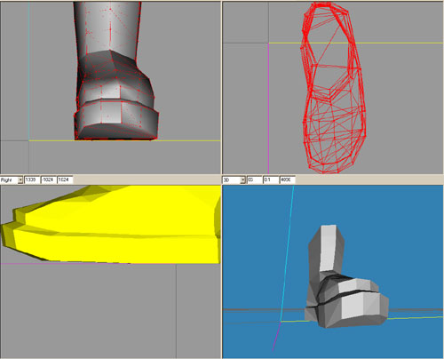1 BodyMeshのUVMAPがとんでもない 2 スカートの中身(フタにしたパーツ)が大胆すぎる 3 どうやらMeshの段階で付いてしまった妙な光源具合が直せない(?) 1のUVMAPはもう永遠の課題ですね・・何も考えず配置してしまった上にテクスチャーを先行して作ってしまった為酷い事になっております。これはちゃんと年代別の肌スキンテクスチャーか裸のUVMAP画像を取り出して作業する癖を付けないとダメですね~; 少しずつTextureCordinateEditorの使い方?を覚えてきているので、次回は肌の何処を出しても変にならないマッピング方法を考えて行きたいと思います。 2、スカートのパンチラ防止のフタ。ここ何日か違うMeshを弄って何となく上手く作れる組み方が見えてきました。 3番の妙な光源というか何と言うか。首のトコロの明るさが直せないのですが、うっすら境目が出来ているのわかりますでしょうか?画像が無いので分かりにくい説明しかできませんが、一瞬BumpMapかな?と思い色々弄りましたが境目の濃さは変わらず、データを軽量化したくて結局BumpMapを削除したのですが、BumpMapがあろうが無かろうが変化はなく。 もしかしたらMilkShapeで作業をする際、smooth Allを使うとそれだけでMeshの面の明るさが変わってしまうとか?他プラグインを使ってみても一度何だかの形でスムージングしてしまうと面の光の当たり方が変化してキレイに繋げない様な気がしております。 うーん原因は他にあるのかもしれませんが、今は思いつきません! もしMesh作成段階で変化してしまうのなら、仕上げ直前に首パーツだけ入れ替えなおして部分的にプラグインで修正でなんとか誤魔化せないかな~と考えております。 原因がリカラーファイルの情報にあるのなら、どうして良いやらさっぱりです。HairMeshも、Hairパーツが露出してるモノは肌が明るめに表示されてしまうので困った困った。 と、問題が多いBodyMeshですが、女の子らしく作れてると思うので自分はとてもお気に入りであります!又、修正方法がわかりましたら修正して行きたいと思いますので何卒ヨロシクお願いします。 反省も踏まえて男性用のBodyMeshを一つ進めております。 いつもBodyMeshは足(靴)から作っていくのですが、今回はどうしても欲しかった男性用の正面から見て靴底が見える形、を組んでみました。革靴でもスニーカーでも男性用で大きいサイズは先が反ってるのが多いのでSimの靴底ペッタンコ足を少し変えられないかな?と思っております。先が反ると何となく歩き方も違って見えるんじゃないかな?? ティーン女子用の靴も高さや形、Jointsを色々変えたら、歩幅が同じはずなのに違って見えたので(眼の錯覚?)今から楽しみです!