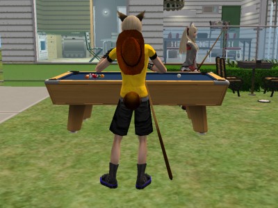 追って対になる髪型ができたら各パーツの大きさの調整をしてリカラーを何体か作って完成です!気の長い作業の様な気がしてまいりました! テクスチャーの効果か少しはバランスの崩れが誤魔化せてるかな? 後ろ姿をいつでも確認できるようにSSを撮ったのですが、帽子と尻尾を取り忘れて台無しに。 靴のJoints設定が素足に近い形で設定してあるので、何だか滑らかすぎて悩みます。ヒールの高い靴ならば元から足にカーブもあるので、固定したい部分と稼動して伸びても良い部分がわかりやすいのですが、普通の素足に近い形だと、のっぺりしてる為か素足っぽい動きでしか安定できません。ちょっとションボリ。 形が地味なのでもう少しゴツくしても良いかもしれませんね! 拍手とコメントを下さった方、本当に有り難う御座います! 拍手画像のアレですがたまに毛が増えてるんです・・ 毛が増えたり減ったり、位置が変わったりしてますので進行度合いが、進んでるのか作り直してるのか妙な具合になっております。 いつできるのか分からないモノばかりですので、気長に見守ってやって下さい!