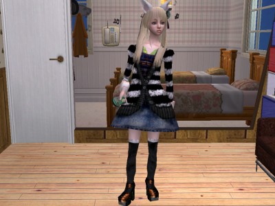 一点はアクセサリの羽根飾りです。 注意:ドリームキャッチャーではありません。 もう一点は先日まで作っていたパフスリーブな服です。 一人反省会はまた後日と言う事で 作成中メッセージと拍手を下さった方、本当に有り難う御座います! Sさんお手数をおかけしてしまって、とても綺麗なSimの画像に驚きました。使っていただけるだけで嬉しいのにこの様に綺麗に使っていただいて本当に幸せです。こちらこそ今後ともヨロシクお願いします。 モヒカンでもいける帽子は帽子であって帽子ではないトコロが何だか気に入っております。 (我が家にモヒカンシムが多かった事もあるのですが) 本当は耳の日でもあるので、付け耳をUPしたかったのですがなかなか上手く行かないモンですねぇ。肩こりのせいにしておこう。 それでは、あまり雛祭りっぽくないデータばかりですが、宜しければ遊んでやってください!不具合等ありましたらお手数ですが、お知らせ頂ければ有難いです! ※追記 BodyMeshのファイルネームの読みはHALO-KITTYと書いてヘイローキティになっております。サンリオのアレとはまったく無関係な名前ですので突っ込まないでやってください。