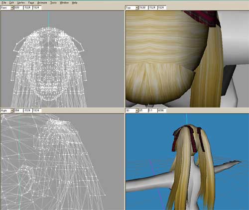 ゴールデンドアラ頭はHairグループと二つのHairalphaグループで作られています。テクスチャーを透過してフサフサにしたかったので耳毛がhairalphaグループになります。 HairグループはOpacityが-1なので、基本透過処理すると透過した部分は地肌になりますよね?透過度合いはBodyMeshと同じになると思っていますが、ドアラの頭の様に透過する必要の無いパーツはHairグループのみで作っております。 このHairグループって何だか特殊な気がします。ゴールデンドアラ頭はHairalphaパーツよりHairパーツの方が大きいので、ヘアMeshを作る時にいつもはしない事をいくつか試しでしてみました。 HairグループにHairalphaグループを溶接してみる ※溶接した瞬間、Hairalphaグループが画面から消失、MS3D上では両グループ反映されますが、Sims2内ではHairグループのみ反映されて、Hairalphaグループは反映されませんでした。 ※Hairグループのテクスチャーサイズを変更する 基本の512×512から1024×512サイズへ変更してみました。結果Hairグループのみテクスチャーが反映されず真っ黒に。Hairalphaグループのみテクスチャーが反映され黒い頭にフサフサの毛が生えてる状態に。MS3D上ではちゃんと反映されてるので、気が付かずにSims2に入れるとちょっとビックリします。テクスチャーのサイズを512×512に戻すと、ちゃんと反映されるようです。 なので?Hairグループのみ通常の512×512サイズで取り、Hairalphaグループはそれ以外の大きさでもちゃんと反映されるっぽい事がやっとわかりました。1024×1024だろうが16×16だろうがHairalphaグループなら大丈夫みたい。 状態がわかりやすいSSがあれば良かったのですが、何も撮ってなくはたしてこの文章でNG具合が伝わるのか心配ですが、一応箇条書きしてみました。 寂しいので何か貼ってごまかそう 02落書き板でも書いていましたが、ロックマン風が男子サーボなら女子サーボはRAキャシーみたいに可愛いくしてあげたいと思い、作りかけも放置で又作り始めました。